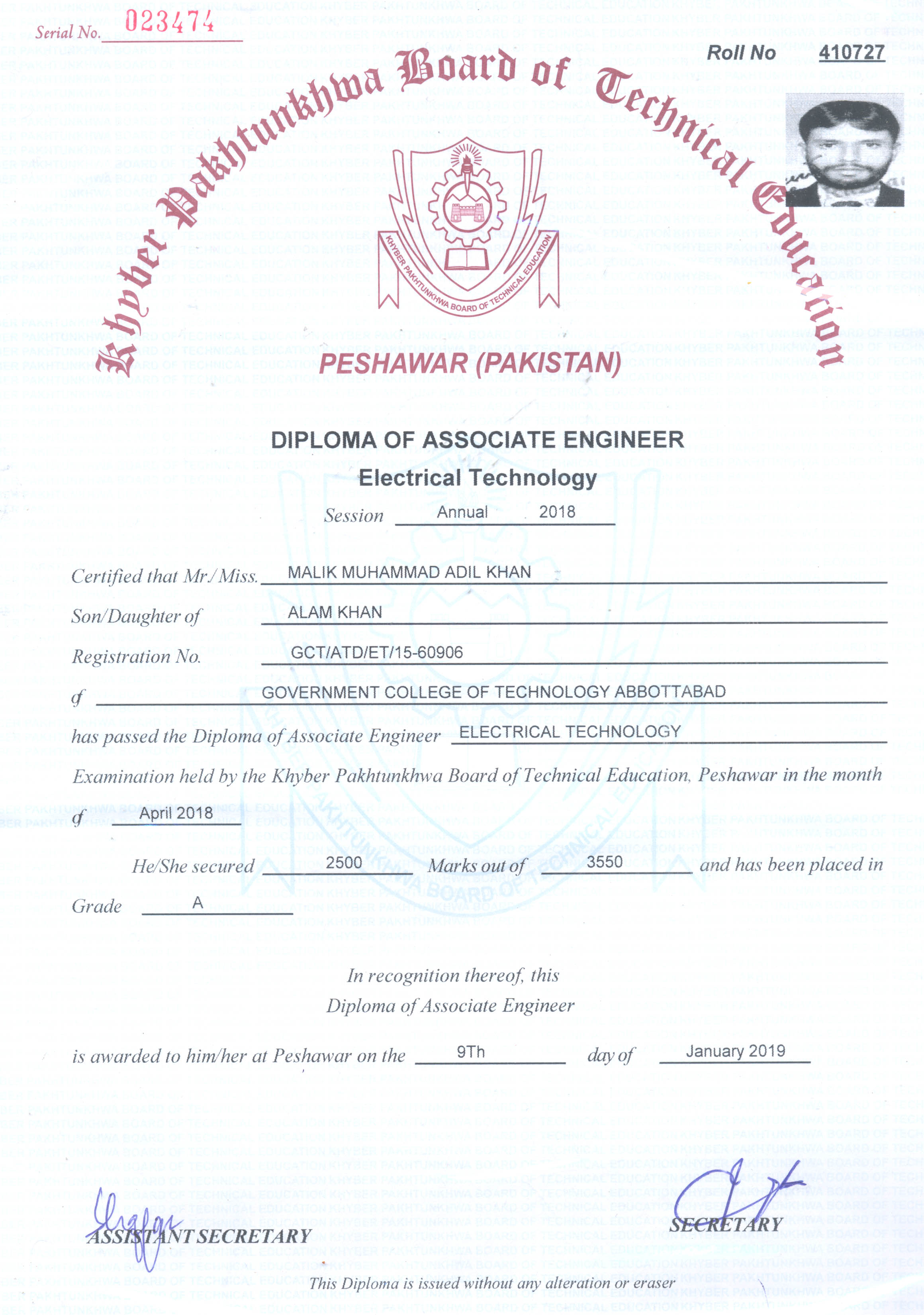 Diploma of Associate Engineer (DAE) Electrical)